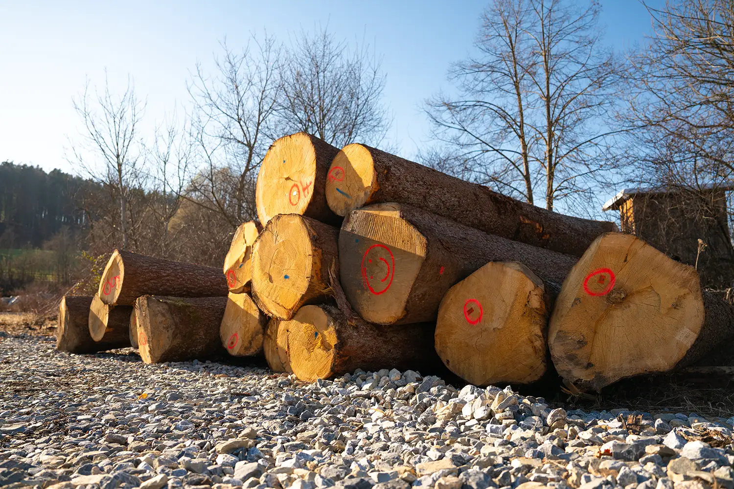 Wir kaufen Sägerundholz bei langfristigen Partnern und decken ein großes Holzsortiment ab. Dabei sind wir flexibel: Wir tauschen Holz, verkaufen Schwachholz weiter und passen uns den Bedürfnissen unserer Kunden an.